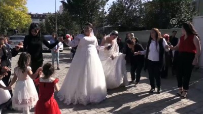 Doğuştan zihinsel engelli Musa ve Selma Demir çiftinin kızları 22 yaşındaki İlksen Yağmur Demir ile Turan ve Makbule Taş çiftinin kızları 33 yaşındaki Şehnaz Dilan Taş için evlerinin önünde temsili düğün töreni düzenlendi.