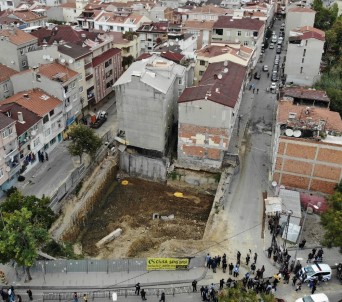 Bağcılar’da yanındaki inşaat kazısı nedeniyle çökme riski yaşayan bina boşaltılmıştı. Çevresinde yoğun güvenlik önlemlerinin alındığı bina havadan görüntülendi. Görüntülerde olay yerine gelen belediye ve zabıta ekiplerinin binanın etrafını çevirerek çökme riskine karşı önlem aldığı görülüyor. Öte yandan binanın temelinde yer yer boşluklar ve zedelenmeler olduğu görüntülendi.