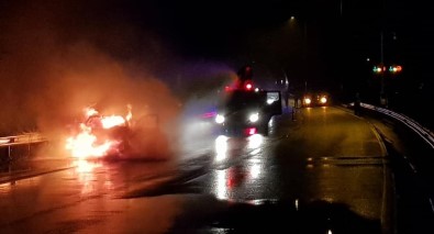 Alev Alan Otomobil Nedeniyle Trafik Durdu, Kaza Oldu