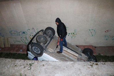 Bahçeye düşen araç vinç yardımıyla kaldırıldı. Kaza ile ilgili soruşturma başlatıldı.