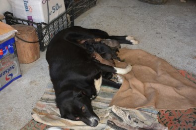 Sinoplu gurbetçi bir vatandaş, evinin bahçesinde yavrulayan köpeklerine sahip arıyor.