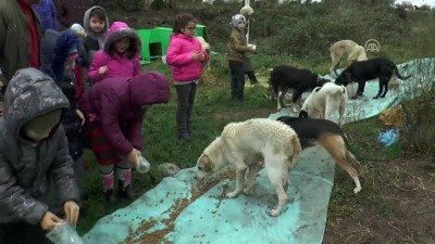 Öğrencilerden Zahide Betül de "Köpekleri severken kendimi mutlu ve heyecanlı hissediyorum. Köpek korkusu varken bile en büyük köpekleri sevebiliyorum. Evde yemek biriktiriyoruz, okulda kumbarada para biriktiriyoruz onlar için." şeklinde konuştu.