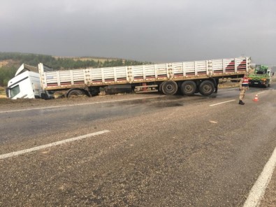 direksiyon hakimiyetini kaybetmesi sonucu şarampole devrildi. Kazada yaralanan tır sürücüsü Polat, Ambulans ile