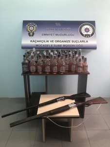 Ekipler, kent merkezindeki 4 adreste yaptığı operasyonda sahte bandrol yapıştırılmış vaziyette, çeşitli marka ve boyutlarda 58 şişe kaçak içki ele geçirildi. Konuyla ilgili A.Y. ve A.S. isimli 2 şüpheli yakalanırken, aramalarda ayrıca 2 adet av tüfeği ele geçirildiği belertildi. KOM polisi, gözaltına aldığı 2 şüpheli hakkında adli ve idari işlem başlatırken, şüphelilerin içkileri yılbaşında piyasaya sürmeye hazırlandığı iddia edildi.