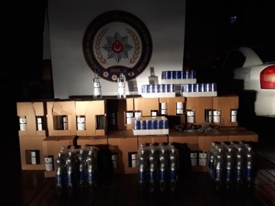 kaçakçılık yapan şahısların ikametlerinde yapılan aramalarda yüklü miktarda farklı ebat ve şişelerde değişik markalarda