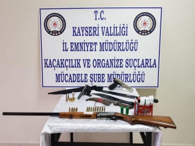 Ayrıca Kaçakçılık ve Organize Suçlarla Mücadele Şube Müdürlüğü Organize Büro Amirliği ekiplerince internet üzerinden sosyal paylaşım sitelerinde silah teşhiri ve ticareti yapan şahıslara yönelik operasyon yapıldı. Yapılan aramalarda 2 adet ruhsatsız tabanca, 2 adet şarjör, 1 adet ruhsatsız av tüfeği, 43 adet tabanca mermisi, 26 adet av tüfeği kartuşu, 2 adet M3 mermisi, 1 adet G3 mermisi ve 3 adet kama ele geçirildi.
