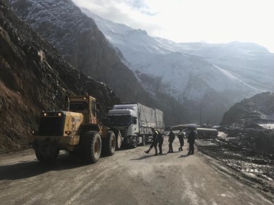 Hakkari-Van karayolundaki buzlanmadan dolayı hareket edemeyerek mahsur kalan araçlar kurtarıldı.
