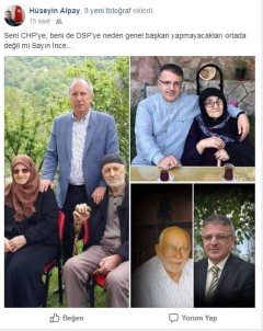 Tokat’ta il başkanlığını yaptığı Demokratik Sol Parti’nin (DSP) Genel Başkanlığına aday olduğunu geçtiğimiz günlerde açıklayan Hüseyin Alpay, sosyal medya hesabından yaptığı paylaşımla CHP’li Muharrem İnce’nin de kendisi gibi partisine genel başkan yapılmayacağını iddia etti.