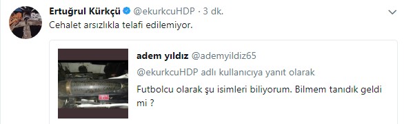 Bu tepkinin ardından takipçisinin Hamzaoğlu'nu futbolcu sandığını söyleyen Kürkçü onu bozmaya çalışırken umulmadık bir karşılık aldı.