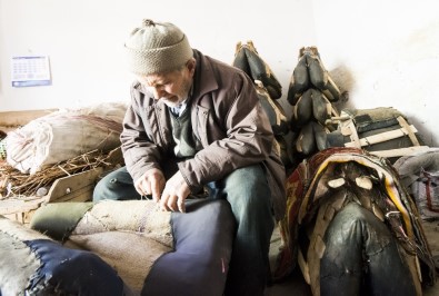Semer ustası Nazmi Semerci, semer satışları düşünce dışarıdan hazır olarak getirdiği çanta, sepet, kürek ve oklovaları satarak geçimini sağlıyor.