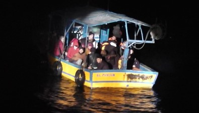 sahil güvenlik botları, belirlenen tekneyi denizde durdurdu. Yapılan kontrollerde teknede 24’ü erkek, 9’u kadın, 5’i ise çocuk olmak üzere 38 göçmen yakalandı.
