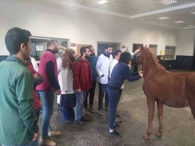 Eğitim kapsamında ata yaklaşım ve zapturapt teknikleri, atın dahili muayenesi, topallık muayenesi, ekstremite muayenesi, tırnak muayenesi, damariçi, kasiçi, ciltaltı ve eklem içi enjeksiyon yerleri, üst solunum yolu endoskopik muayenesi, atlarda hemogram ve yorumlanması, kolik ve tedavi protokolü konuları anlatılarak, öğrencilere uygulamalar yaptırıldı.