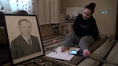 Aydın’da yaşayan bedensel engelli Rabia Asrak (18) Afrin Harekatı’na destek verdi. Kollarını kullanamayan genç kız, ayakları ile harekatın simgesi ‘zeytin dalı’ çizdi. Cumhurbaşkanı Recep Tayyip Erdoğan’ın da karakalem tekniği ile portresini çizen Asrak’ın tek hayali ise Erdoğan ile görüşebilmek.