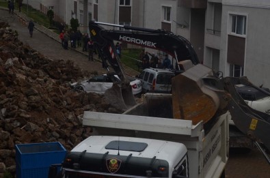 Trabzon'da Çöken İstinat Duvarın Altında Kalan Araçlar Çıkartıldı