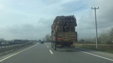 Sakarya’da oldukça yüksek seviyede palet yüklenen kamyonun tehlikeli yolculuğu görenleri hayrete düşürdü. O anlar ise cep telefonu kamerası ile görüntülendi.