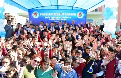 Kepez Belediye Başkanı Hakan Tütüncü, Şehit Kahraman Çelikbaş Ortaokulu’nda öğrencilere forma dağıttı.