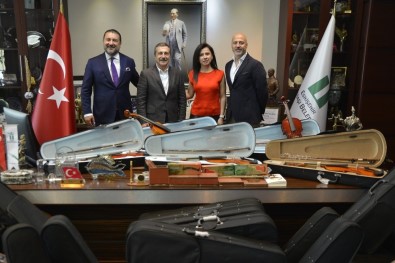 Tepebaşı Belediye Başkanı Dt. Ahmet Ataç’ı makamında ziyaret ederek orkestraya 14 adet keman ve 28 adet arşe bağışında bulundu.