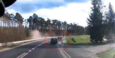 Polonya’da viraja hızlı giren otomobil, kontrolden çıktı ve bir bir bisikletliye çarptı. Kazada 2 kişi yaralandı.