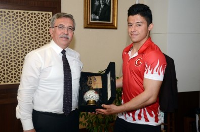 şampiyon Batuhan Yüksel’i makamında kabul edip, başarılarından dolayı tebrik etti. Pursaklar’daki sporcuların her geçen gün daha fazla başarı gösterdiklerini belirten