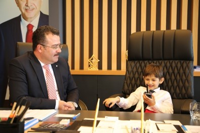 Atakum Belediye Başkanı İshak Taşçı, 23 Nisan Ulusal Egemenlik ve Çocuk Bayramı’nda makamını şehit Piyade Er Umut Bulut’un oğlu Selçuk Yağız Bulut’a teslim etti.