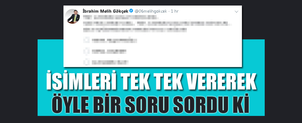 Kendisi için tweet aleminin kanaatinin önemli olduğunu söyleyen Melih Gökçek, Kemal Kılıçdaroğlu, Meral Akşener ve Muharrem İnce'nin adlarını vererek hangisi 'FETÖ'cü değildir' diye sordu.