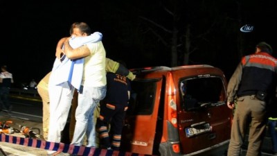 sağlık ekibi sevk edildi. Bölgeye intikal eden itfaiye ekipleri çarpışmanın etkisiyle hurdaya dönen aracın içinde sıkışan yaralıları yaptıkları müdahale ile çıkartırken, sağlık ekiplerinin yaptığı kontrolde, kamyonette bulunan sürücü Bülent Karabulut ve Ebru Karabulut’un olay yerinde hayatını kaybettiği belirlendi.