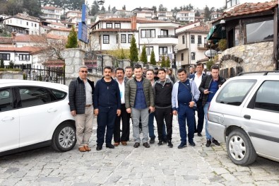 hatıra fotoğrafı çektirdi. Kalkandelen’de yarım saat süren şehir turunun ardından Ohrid’e geçen heyet öğle yemeğinin ardından UNESCO Dünya Mirasları listesinde yer alan ve bu şehirde bulunan tarihi mekanları gezdi. Safranbolu evlerini anımsatan eski yapılarda da incelemelerde bulunan mahalle muhtarları gezi turunun sonunda yöresel ürünlerinin bulunduğu mağazalardan