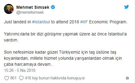 Başbakan Yardımcısı Mehmet Şimşek hakkındaki istifa iddialarının ardından resmi twitter hesabında paylaştığı mesajla ’Göreve devam’ dedi.