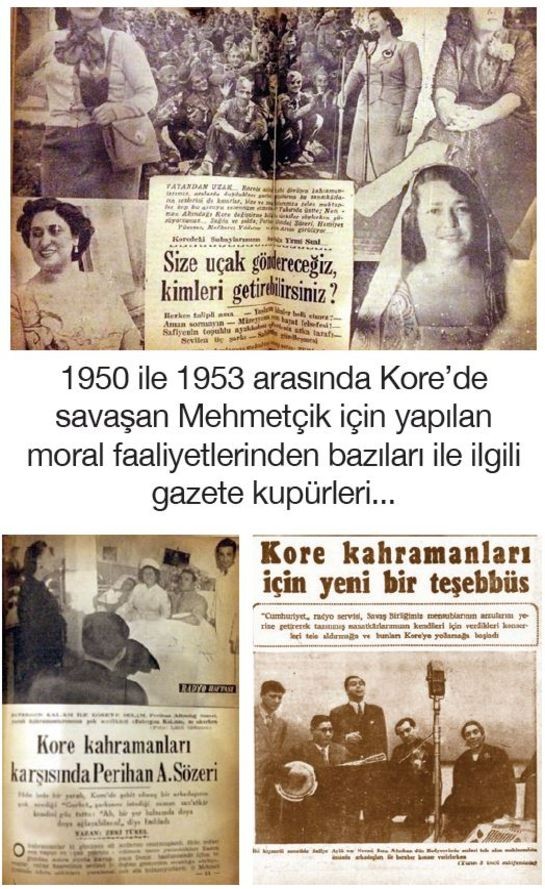 Aynı moral çabaları sonraki senelerde, Kore Savaşı'nda da devam etti. O günlerin meşhur sanatçıları konser maksadıyla Kore'ye gidebilmeleri için hayli çaba göstermiş fakat mesafenin uzaklığı buna mâni olmuş ve cepheye İstanbul Radyosu'nda her hafta Kore için doldurulan özel bandları yollamak ile yetinmiştik. Ama, Kore'den getirilen yaralı askerlerimiz için ilk tedavilerinin ardından hastahanelerde hemen konserler düzenledik ve bu konserleri öyle sıradan isimler değil, Safiye Ayla, Perihan Altındağ, Müzeyyen Senar yahut Hamiyet Yüceses gibi devrin en sevilen sanatçıları verdiler.