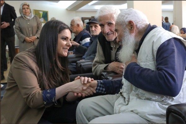Bakan Sarıeroğlu, yaşlılarla tek tek ilgilendi, sohbet etti.