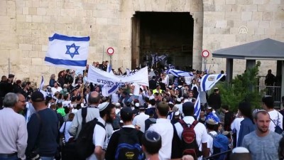 Kudüs'ün 1967'de işgal edilişinin 51. yılı dolayısıyla Şam Kapısı'nda kutlama yapan yüzlerce Yahudi, Eski Şehir'in sokaklarından geçerek Mescid-i Aksa'nın batı duvarı olan Burak Duvarı'nda (Ağlama Duvarı) toplandı.