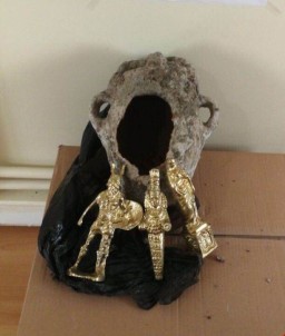 polis merkezi amirliğine giderek 2 kişi tarafından dolandırılacağını düşünerek ihbarda bulundu. A.İ., 2 kişinin yanına gelerek verecekleri tarihi eseri bir müddet saklamasını istediklerini söylemelerinden dolayı dolandırıcı olduklarından şüphelenerek ihbar etti. Şahıslar kırık toprak testi içinde saklanmış 3 adet sarı renkli ve metalden yapılmış ’Meryem Ana’