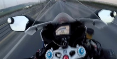 E-5 karayolu Çağlayan mevkiinde bir motosikletli trafikte 200 kilometre hıza ulaşarak metrelerce tek teker üzerinde gitti. Motosikletli hem kendi hem de sürücülerin canını tehlikeye attığı o anları kask kamerasıyla kaydedip sosyal medyada yayınladı.