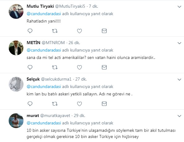Dündar'ın bu paylaşımına yorum yağarken 'Yetkili adamın seninle ne işi olur' 'Kim bu batılı yetkili' 'Sana da tel açtı mı Amerikalılar?' gibi tweetler atıldı.