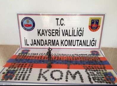 Kayseri’de jandarma ekiplerinin tarihi eser kaçakçılığı yapan şahıslara yönelik düzenlediği operasyonda, 507 adet sikke ve 2 adet madeni heykel ele geçirildi.