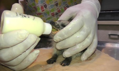 Bitkin görünen yavru kirpiyi muayene eden Veteriner Hekim Olgun Aslan, hayvanın açlıktan bu hale geldiğini ifade etti.
