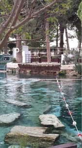 Pamukkale’de UNESCO Dünya Kültür Mirası Listesinde yer alan, MÖ. 2’nci yüzyıldan kalan Hierapolis Antik Havuzu’nda geçtiğimiz salı günü çökme meydana geldi. Havuzun sol bölümündeki merdivenlerin yanında bulunan beton duvar, havuzun içine doğru yıkıldı. Duvarın yağmur sularının betondan sızması ve alt bölümdeki toprağın yumuşaması nedeniyle çöktüğü belirtildi. Turistlerin ilgi gösterdiği bölgede yıkım esnasında kimsenin olmaması olası bir yaralanma ve can kaybını önledi. Güvenlik şeridine alınan havuzdaki beton parçaları görevliler tarafından temizlendi. Tabiat Varlıkları Koruma Kurulu’nun vereceği rapor doğrultusunda yıkılan yerin onarılacağı bildirildi.