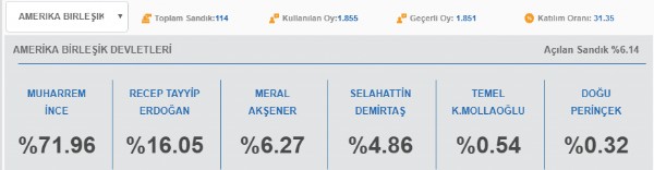 FETÖ'cülerin yoğun olarak yaşadığı ABD'de Muharrem İnce birinci çıktı.