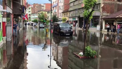 Kentte etkili olan sağanak ve dolu nedeniyle bazı iş yerlerini su bastı, yollarda oluşan su birikintileri sebebiyle araçlar güçlükle ilerleyebildi.