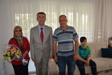 Balıkesir’in Edremit ilçesinde sağlık nedenleri sebebiyle evde eğitim görmekte olan Şehit Halil Kantarcı Ortaokulu 7.ci sınıf öğrencisi Muzaffer Çevik’i ziyaret eden Edremit Kaymakamı Ali Sırmalı, İlçe Milli Eğitim Müdürü Yusuf Koç ve Okul Müdürü Hakan Yıldız kendisine karnesini verdiler.