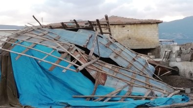 Şiddetli Rüzgar Ahırın Çatısını Uçurdu