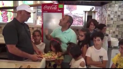 Çocuklara burada pizza yapmayı öğreten Sonel ve Arı, çocukların mutluluklarına ortak oldu.