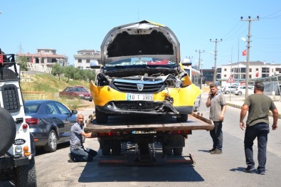 Bugün saat 11.00 sıralarında AyvalıkSanayi Sitesi önünde meydana gelen kazada, Sırbistan uyruklu Elbir Muriç’in idaresindeki NKH 299 plakalı araç, İhsan Kocabıyık’ın kullandığı 10 T 3909 lakalı ticari taksi ile çarpıştı. Kazada Sırbistan plakalı özel otomobilde bulunan sürücü Elbir Muriç’in yanı sıra 2 ‘si kadın 4 Sırp uyruklu tatilci ile taksi şoförü İhsan Kocabıyık kazayı hafif sıyrıklarla atlattı. Her iki araç da kullanılmaz hale geldi. Kazayla alakalı tahkikat sürüyor.