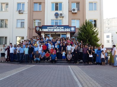 Adıyaman İl Emniyet Müdürlüğü önünde gerçekleştirilen uğurlamaya çok sayıda
