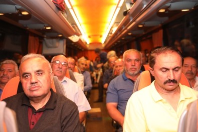 Çanakkale’ye gidecek olmanın heyecanını yaşayan mahalle muhtarları, aileleri ile vedalaştıktan sonra yola çıktı.