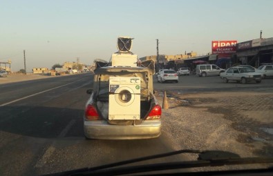 Şanlıurfa’da otomobil bagajında beyaz eşya taşıyan bir sürücü, tehlikeye davetiye çıkardı.