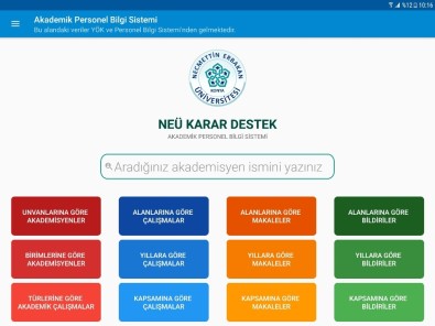Uygulama hakkında NEÜ Bilgi İşlem Daire Başkanlığından yapılan açıklamada, “Her geçen gün büyüyen üniversitemizde akademik ve idari anlamda gerçekleştirilen iş ve işlemlerin mevzuatlara uygun, hızlı, şeffaf ve hizmet kalitesinin arttırılmasına yönelik olması gerekmektedir. Bu kapsamda birimimiz tarafından üniversitemize ihtiyaç duyulan uygulamalar tespit edilerek bu yazılımlar geliştirilmektedir. Bu yazılımlar farklı platformlarda olduğu gibi erişim bilgileri de farklılık göstermektedir. Kullanıcı tarafından farklı platformlarda olan ve erişim bilgileri farklı olan yazılımlara tek bir noktadan erişmek, söz konusu yazılımlarda kullanılan girdileri, çıktıları tek bir uygulama üzerinden zamandan ve mekandan bağımsız bir şekilde raporlayabilmek, isteğe göre detayına bakıp inceleyebilmek yönetim anlamında büyük kolaylıklar sağlamaktadır” denildi.