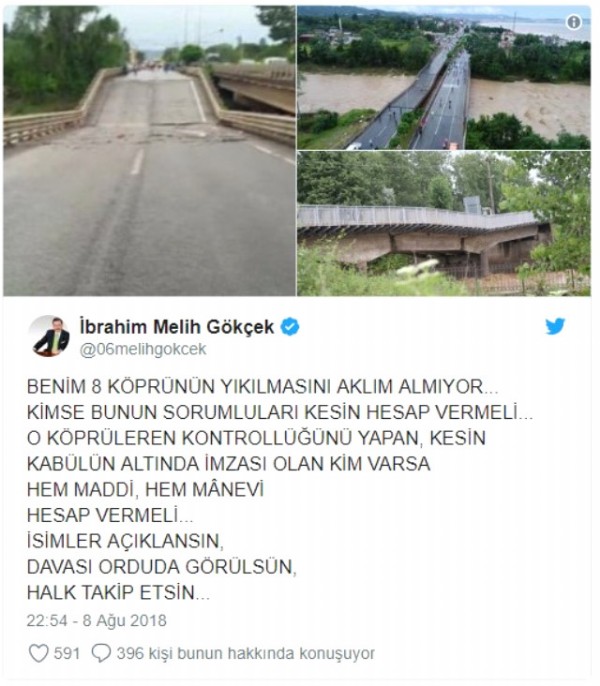 Benim 8 köprünün yıkılmasını aklım almıyor. Kimse bunun sorumluları kesin hesap vermeli. O köprülerin kontrollüğünü yapan, kesin kabulün altında imzası olan kim varsa hem maddi, hem manevi hesap vermeli. İsimler açıklansın. Davası Ordu'da görülsün. Halk takip etsin.