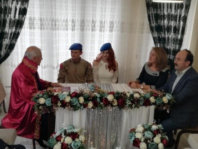 Evlerinde düzenlenen nikahı Soma Belediye Başkanı Ali Tulup tarafından kıyılan çift, yapılacak olan Fırat’ın Doğusu harekatına katılacak askerlere moral olsun diye komando kıyafetleriyle nikah kıydıklarını belirtti.