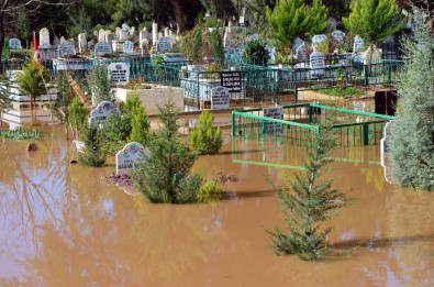 Adana’da geceden bu yana etkisini sürdüren yağmur, İncirlik ve Kürkçüler mezarlıklarını sular altında bıraktı.